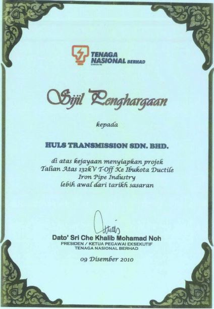 Huls Transmission Sdn Bhd's vision to be the premier company of choice for energy and engineering needs recognized worldwide for power system solution